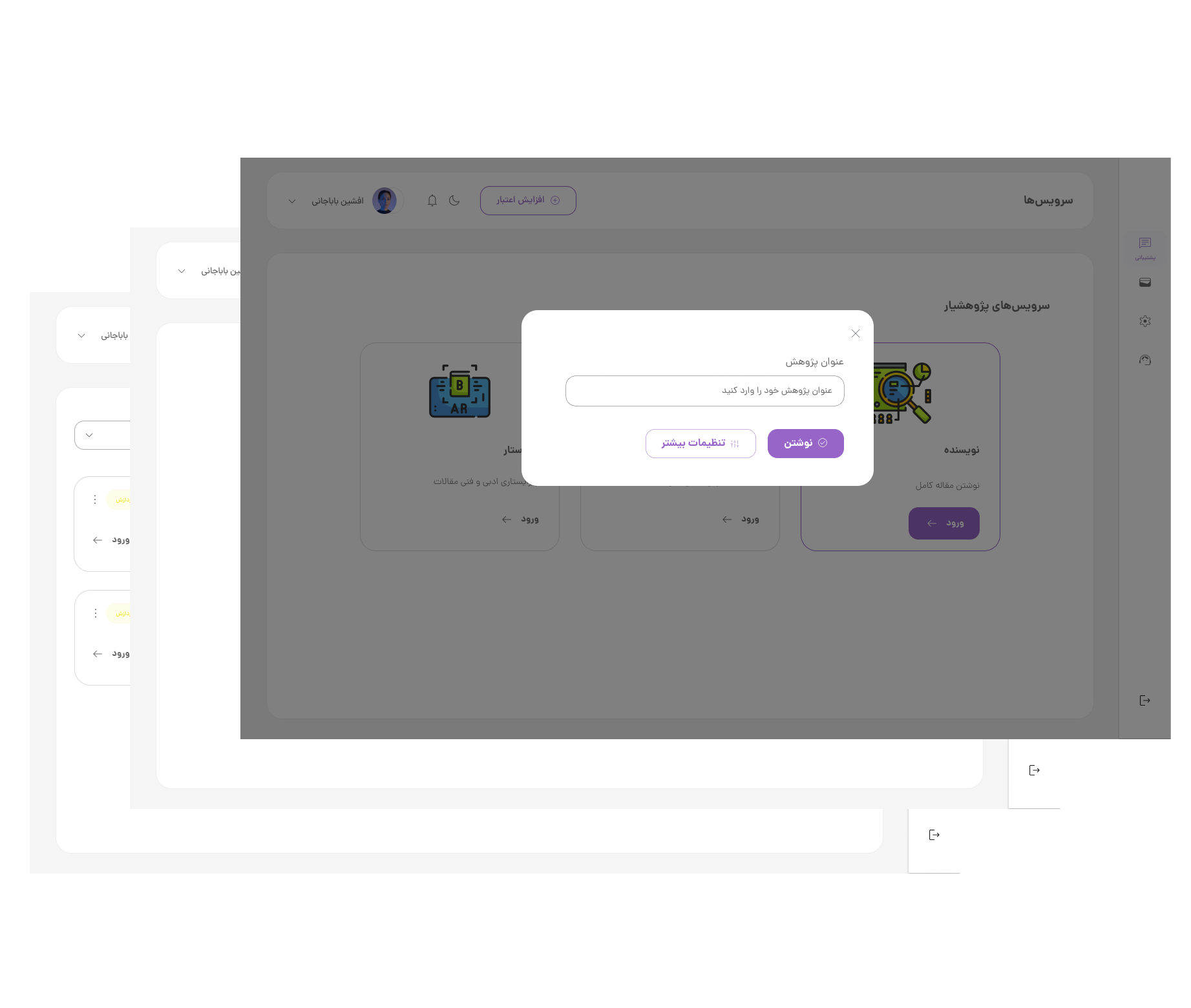 با دستیار هوشمند نوشتن، سریعتر، بهتر و خلاقانهتر بنویسید. از تولید محتوا برای شبکههای اجتماعی تا نوشتن مقاله، گزارش، ایمیل و حتی کتاب؛ ما همراه شما هستیم.